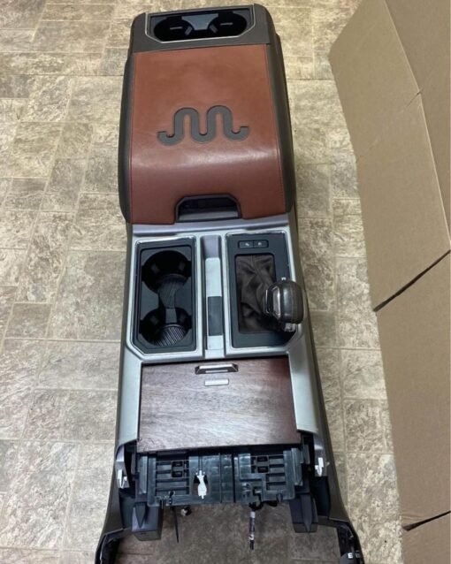 The 2015-2021 Ford F-150, F-250, and F-350 King Ranch Center Floor Console is a premium interior feature that combines luxury, functionality, and comfort. The use of premium leather, wood accents, and modern tech features makes it a standout element of the King Ranch trim, perfectly complementing the truck’s upscale interior. Whether you’re looking to replace a damaged console or enhance your truck’s interior, this center console is a great choice for those who want both elegance and utility in their Ford Super Duty truck.