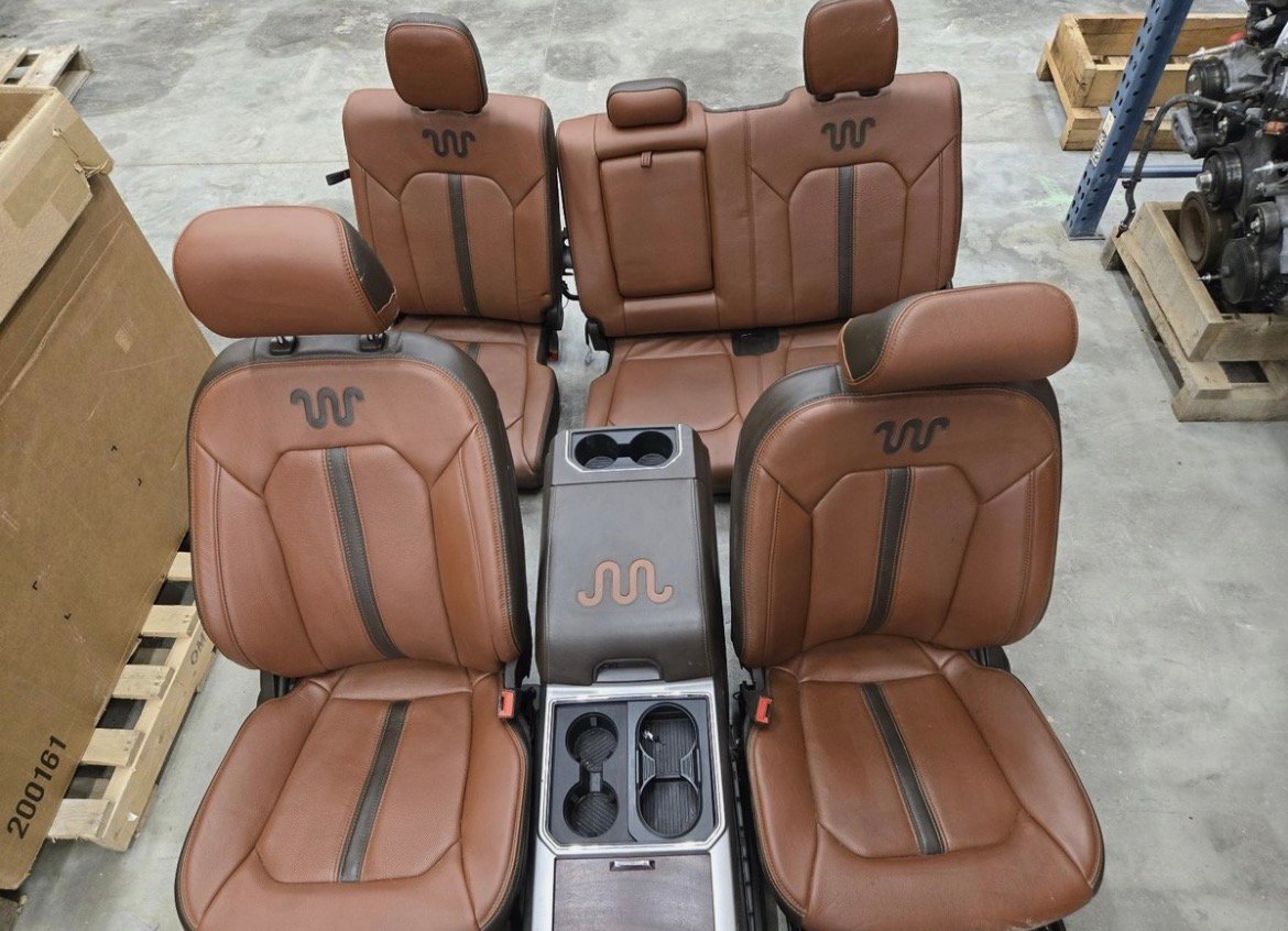 Complete 2017–2022 Ford F350 Super Duty King Ranch seat set with console. OEM leather, front and rear seats, perfect factory fit, restores comfort, luxury, and interior functionality. Ideal replacement for worn or damaged King Ranch interiors.